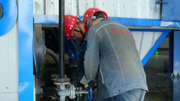 工人正在查看锅炉供热情况