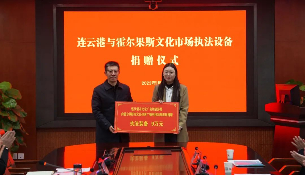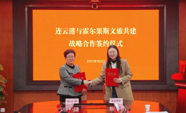 在连云港市文广旅局考察时,霍尔果斯市政府文旅代表团一行与连云港市文广旅局党委书记、局长封海燕等人进行了座谈。双方共同观看了两城的文旅宣传片,并就各自城市概况、文旅资源和文旅发展情况作了介绍并达成合作共识。霍尔果斯市文旅局和连云港市文广旅局签订了文旅共建战略合作协议,连云港市文广旅局向霍尔果斯市文旅局捐赠了文化执法设备,以实际行动支持霍尔果斯文旅事业发展。