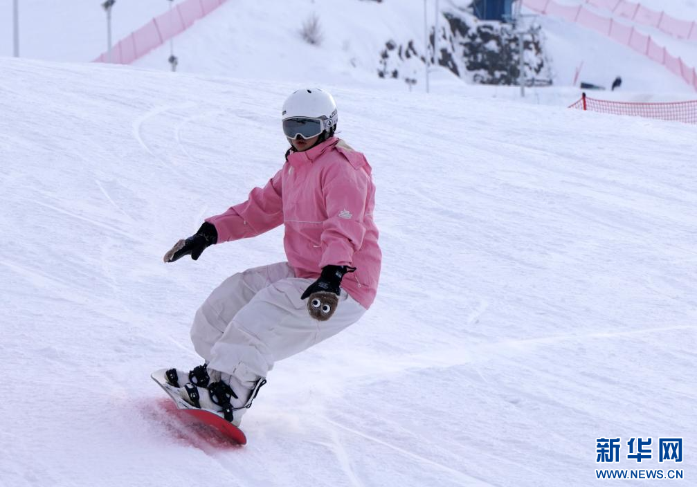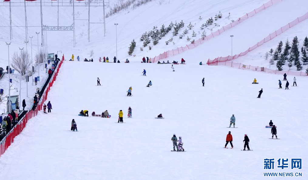 1月8日,滑雪爱好者在新疆阿勒泰市将军山滑雪场的雪道上滑行。
