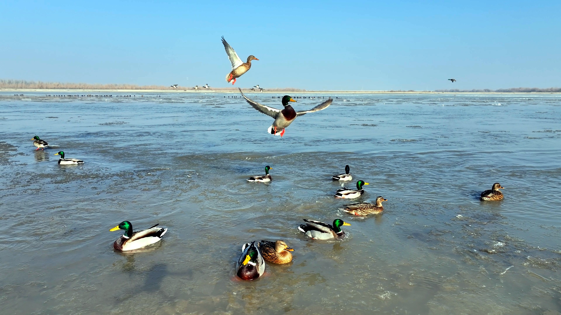 1月6日,在叶尔羌河麦盖提县段,随处可见绿头鸭、黑鹳、小苇鳽等珍稀鸟类,这些候鸟时而翱翔蓝天,时而低头觅食,时而在水中嬉戏,与周边的自然环境融为一体,在一动一静间形成完美的组合,为冬日增添了不少生机与灵动。