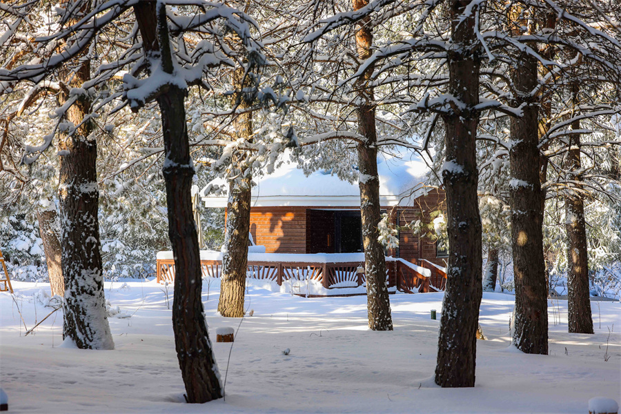 深冬时节,踏入新疆新源县那拉提森林公园,仿若步入被岁月尘封的冰雪王国。皑皑白雪,如天使的羽毛,轻柔地落满每一寸森林。枝桠间,雪团簇拥,似棉絮堆积,压弯了枝头,宛如大自然精心雕琢的艺术品。在这片银白的世界里,精致的小木屋错落有致地分布着,被厚厚的积雪覆盖,屋顶、窗台、门廊,小凳……皆被白雪温柔包裹,它们或是顶着厚厚的雪帽,或是披上了晶莹的雪衣,为森林勾勒出灵动的线条。这一切,共同绘就一幅诗意盎然的冬日森林画卷,让人恍惚间以为闯入隐匿于林间的童话世界。