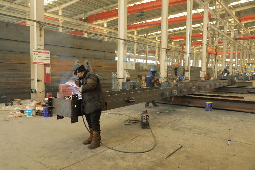 新疆中昶钢结构工程有限责任公司生产车间一片热火朝天的生产景象。阿迪力·艾尼 摄