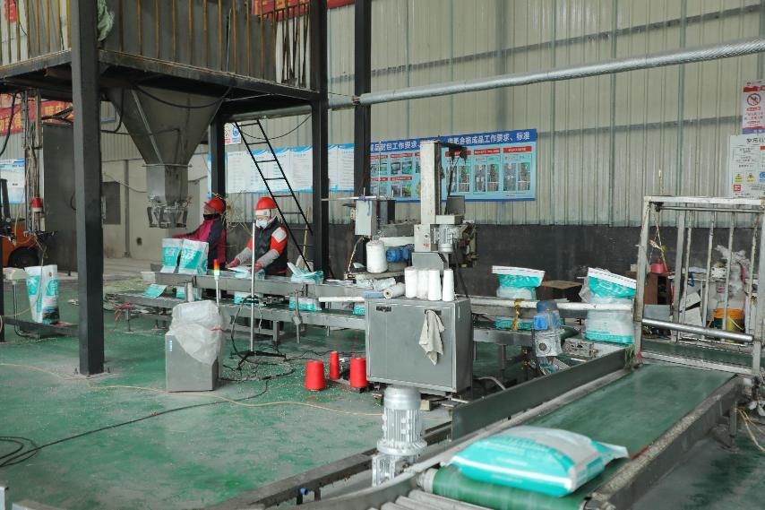 公司包装车间,工人们在对化肥进行包装。阿迪力·艾尼 摄