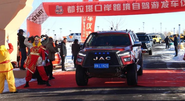 随着喇叭轰鸣,都拉塔口岸跨境自驾游发车仪式正式启动,35辆车46人将开启为期6天,途经春贾、恰伦、阿拉木图等地的中亚之旅。