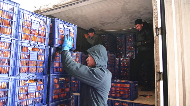 霍尔果斯金亿国际物流中心每天出口的果蔬农产品在2500吨左右,各个仓储库房都有搬运工人的身影,一车一车装满,一车一车发走,他们像串联的纽带,将家庭希望和企业荣誉、霍尔果斯发展紧密相连。