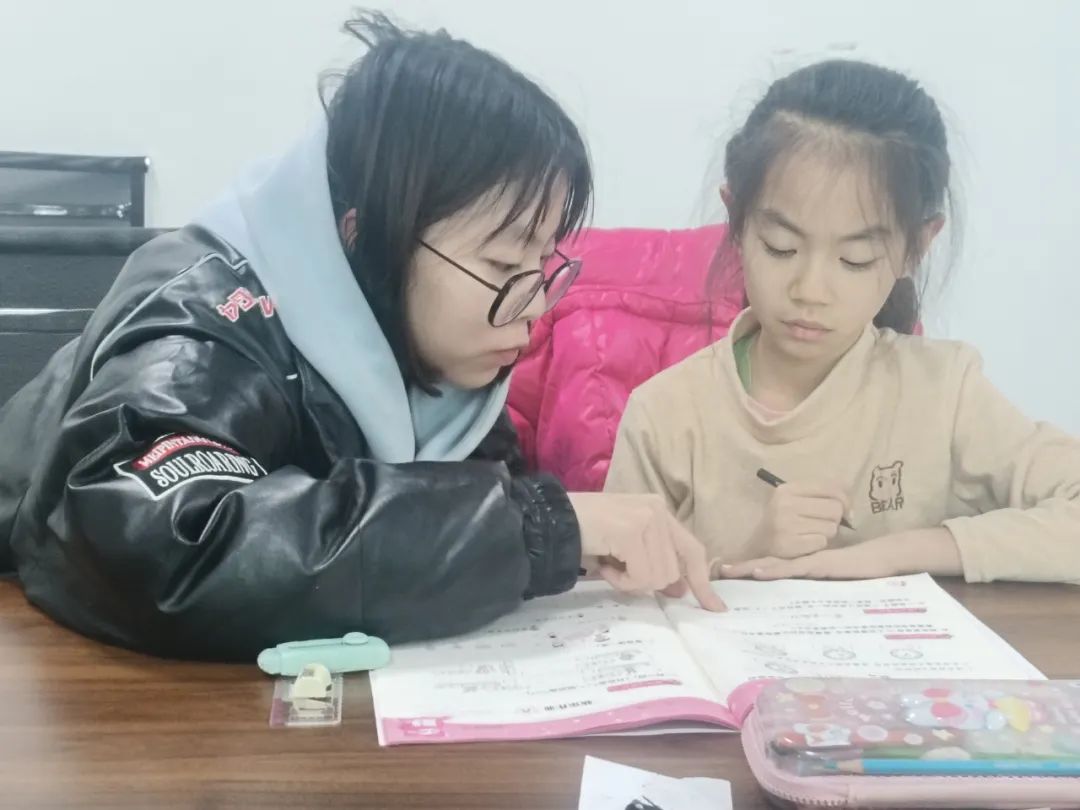 “老师,老师,希望的近义词是什么?老师,这道题怎么算?”在沙湾市桃园街道奎屯路社区“红领巾小课堂”上,大学生志愿者们一对一地给孩子们进行课业辅导。