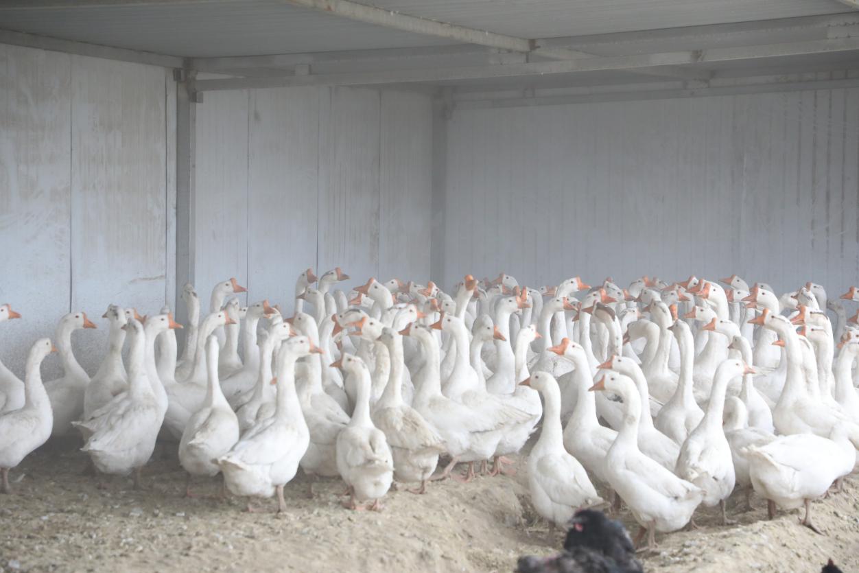 何茂秀养殖的大三花鹅。朱志升 摄