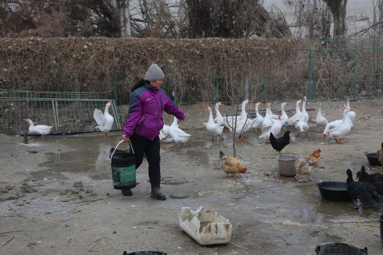 “抢什么抢啊,大家都有份,饿不着你们的……”新疆兵团第一师阿拉尔市十一团花桥镇六连职工何茂秀在果园里一边给鸡、鹅喂食,一边数落抢食的红嘴雁。看着眼前能为家庭带来收入的大三花鹅、红嘴雁和散养土鸡,她的脸上露出幸福的笑容。