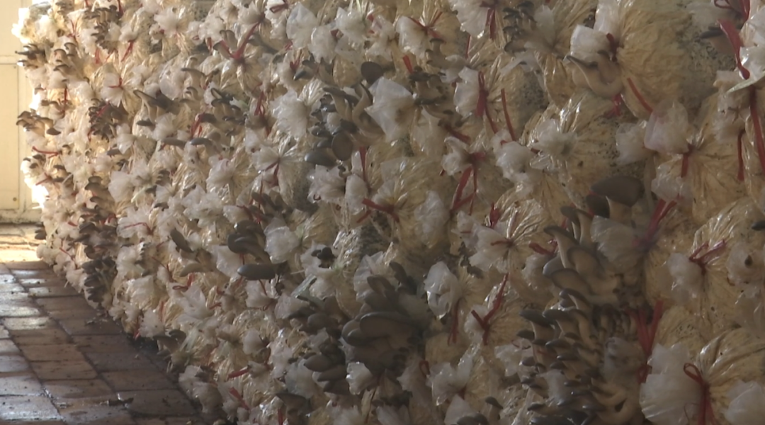 今年已经69岁的王秀兰,通过网络学习种植平菇技术。目前,她种植的平菇长势喜人。