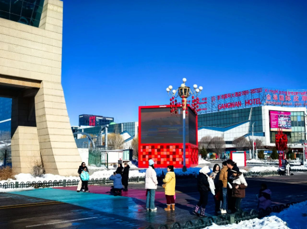 除了红火的购物游之外,跨境游也是合作中心的一大亮点。62团游客孙玉萍带着从四川来的亲朋好友在合作中心体验“出国”的乐趣。“今年是家人第一次来新疆过年,冰雪项目玩了,美食吃了,再带他们转转,来合作中心体验跨境游的独特魅力。”孙玉萍说。