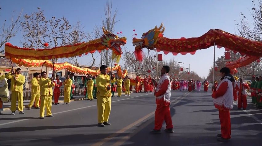 鼓声如雷、钹音清脆、锣鸣镗镗,精彩的社火表演,一张张幸福的笑脸,构成了一幅喜庆祥和的喜迎新春画卷。大家通过铿锵的锣鼓、金色的祥龙、欢快的秧歌等表演,展现了麦盖提县各族人民的热情和活力的同时,也向全县广大群众送去了新春的问候和祝福,让各族群众体验年味十足的民俗文化盛宴。