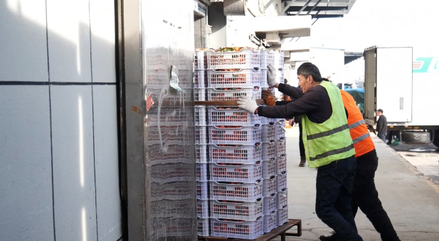 霍尔果斯某国际贸易(集团)有限公司总经理于欢说:“现在果蔬出口每天在50车左右,实现了新年开门红。”