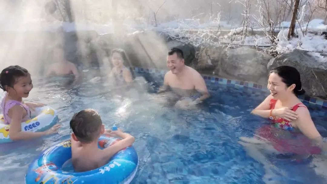 春节假期里的沙湾温泉旅游景区,喜庆的红灯笼挂满了各个角落,与热气腾腾的温泉池相互映衬,年味十足。来自全国各地的游客们趁着假期,拖家带口、呼朋唤友,纷纷涌入这片温暖的天地。