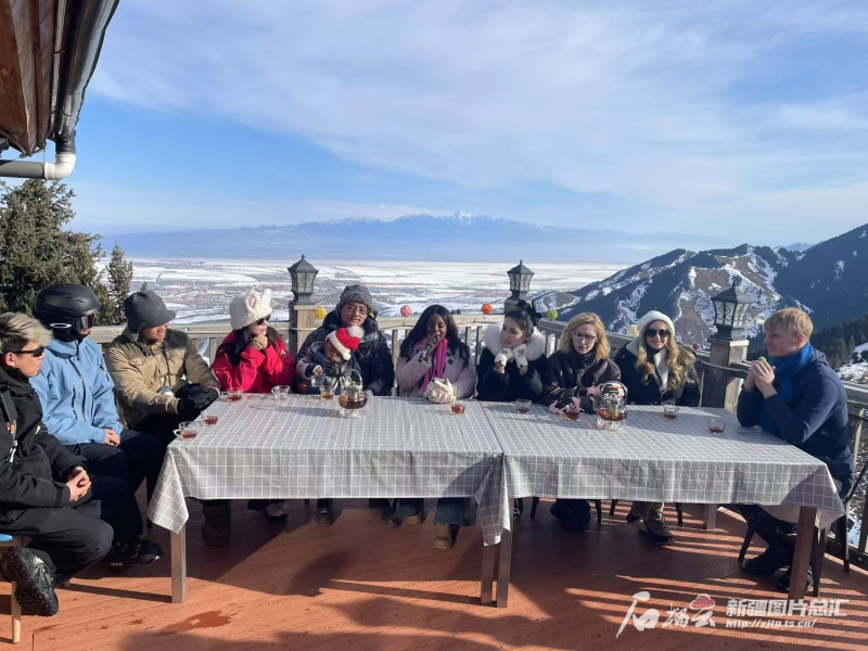 中外博主走进丝绸之路山地度假区感受冰雪魅力。石榴云/新疆日报记者 姚刚摄
