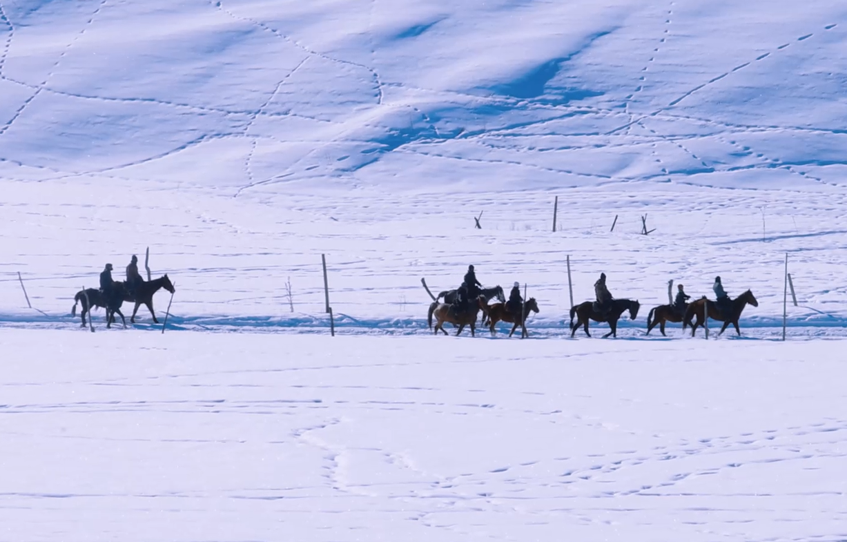 2月7日,新疆特克斯县齐勒乌泽克镇吾尔塔米斯雪原如银绸铺展,天山褶皱间雾凇凝结时光,松枝托起凝固的云朵。枣红马踏碎寂静,牧人扬鞭划开雪幕,马蹄溅起晶亮的星子,奔向云杉掩映的木屋。冬窝子炊烟扶摇,窗棂凝着霜花,铜壶在毡毯投下暖光。雪岭环抱的秘境里,牧人与群山完成着千年的对话。(塔依尔)