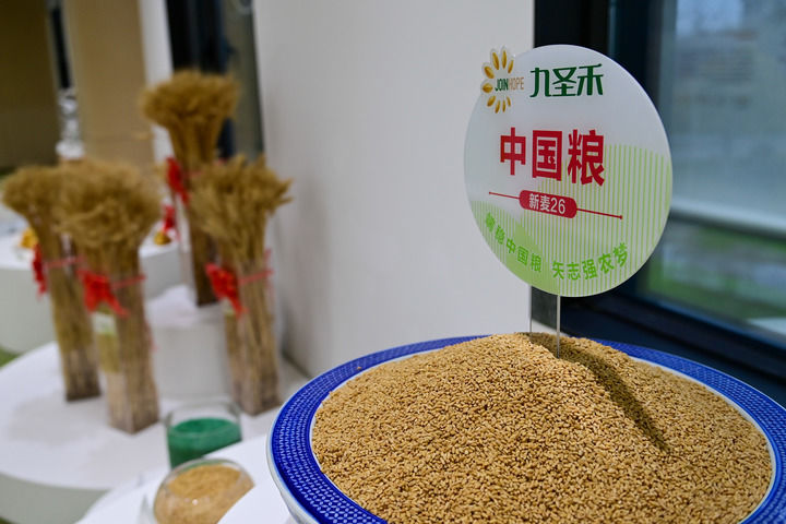 在新疆昌吉市的九圣禾种业股份有限公司拍摄的种子产品(2024年11月7日摄)。新华社记者 丁磊 摄