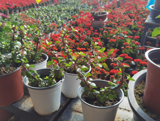 冬日大棚内造型别致的盆景。李恬蕊 摄