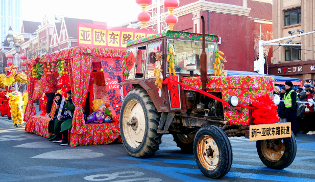 表演者周保刚说:“今天天气很冷,但是内心很激动,我从小开着拖拉机长大的,今天非常荣幸,能够开着它进行社火表演,希望能给大家带来不一样的体验。在这儿祝大家元宵节快乐,也希望我们国产拖拉机越来越好。”