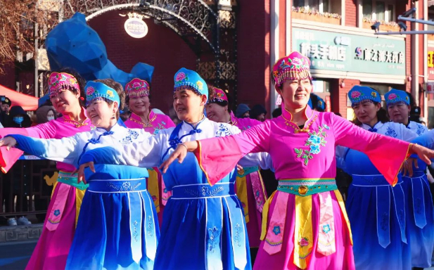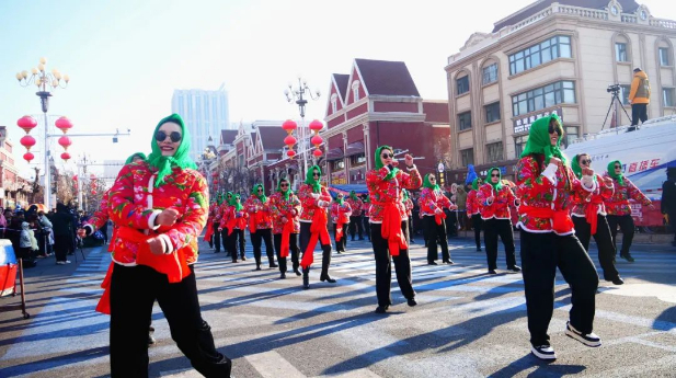 上午11时,在霍尔果斯市友谊路网红街,来自全市各乡(街道)、企业的8支风格各异的社火表演队踏着喜庆的鼓点,和着欢快的节拍相继登场。狮子追逐嬉闹,攀高附低,矫健的身姿让围观群众大饱眼福;金龙辗转腾挪,忽而高耸升空,似要直冲九霄,忽而低回盘旋,像要入海破浪;威风的锣鼓气势恢弘,古朴典雅,敲出了新征程的时代强音;秧歌队阵容强大、服装艳丽、动作整齐、花样繁多,在传统的表演中融入流行元素,让人耳目一新。围观群众大声叫好,纷纷拿出手机,记录着美好瞬间。