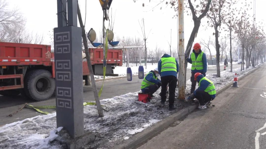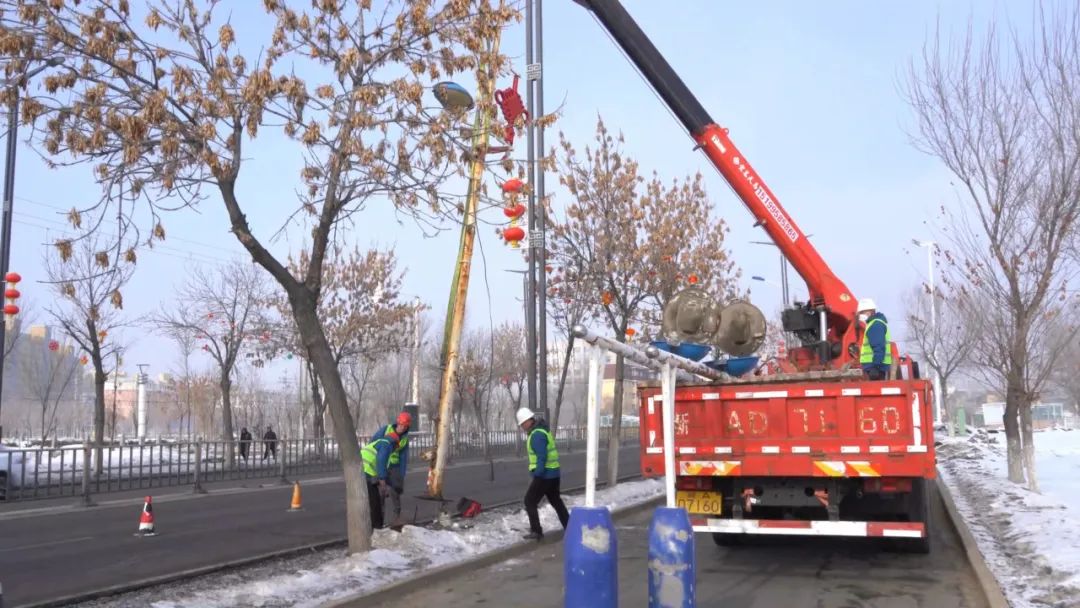 沙湾市城区市政道路新建及改造工程Epc总承包三标段负责人 段松说:“现在现场进行的是乌鲁木齐路172盏旧灯拆除工作,我们配备了10名工人,2名随车吊,分开两个班组对路灯进行拆旧作业,争取月底前拆除完成。计划2025年6月份三标段项目工作全部完成。”
