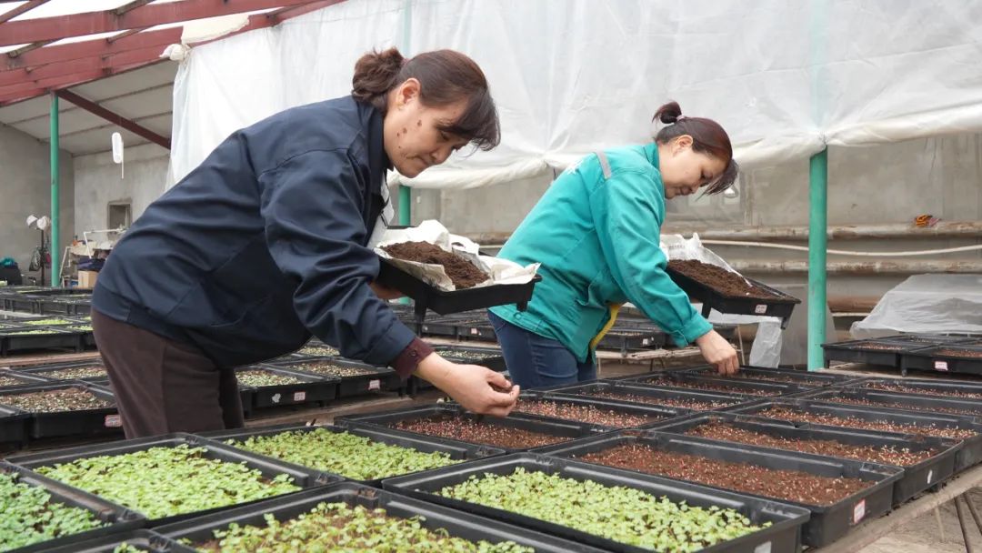 新疆瑞晟城市投资发展集团有限公司花房园艺师 哈玛丽亚·波汗说:“眼下,我们正在给鸡冠花进行覆土工作,使幼苗能够粗壮成长。与此同时,要严格把控棚内的湿度、温度、光照。今年,我们计划育苗63万株种子,目前已经成功育出40万株种子,包括四色矮牵牛、一串红、鼠尾草、非洲凤仙、紫松果菊等14个品种。”