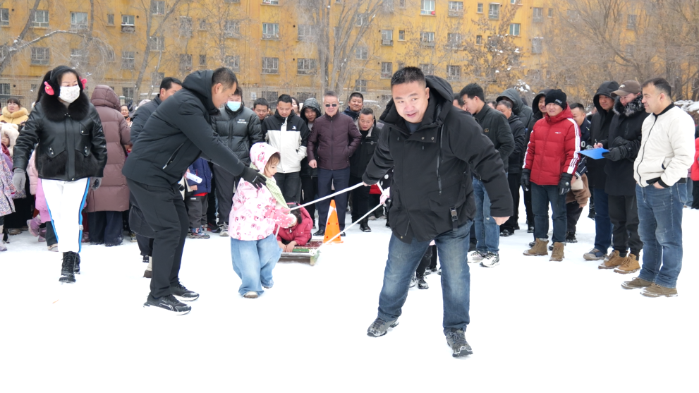足球场地上雪橇拉人往返接力赛也进行得如火如荼,交接时的有条不紊,奔跑时的全力以赴,让整个赛场充满了温馨与欢乐。