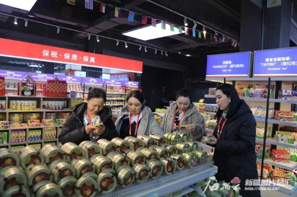 2025年2月,朱广兰(左一)同部分在疆全国人大代表在乌鲁木齐综合保税区视察。李娜摄