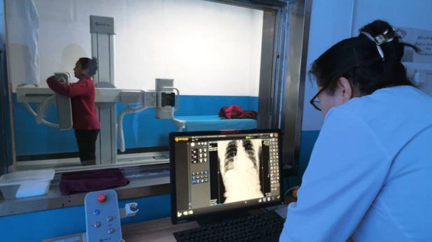 群众在温宿县托甫汗镇卫生院进行项目检测。张佳宁 摄