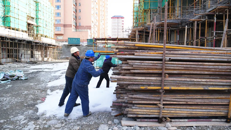 2月27日,记者在霍尔果斯万创世纪学府建设项目现场看到,工人们正忙着清理积雪,清点设备和材料。该项目位于霍尔果斯滨河路一巷以南,振兴路以北,卡拉苏河以东,总投资3.5亿元,总建筑面积88356.62平方米,共建有2栋商业楼和9栋住宅楼,配套地下车库及相关附属设施,可满足居民多元化需求。