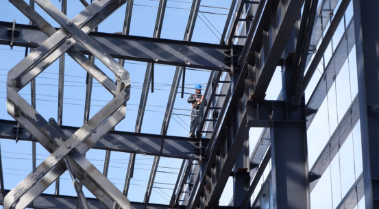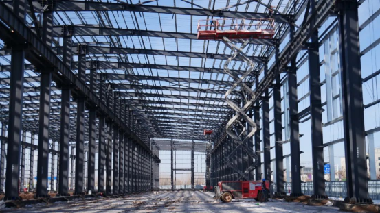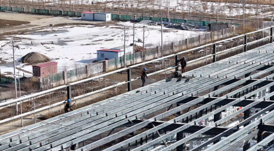 新疆陕建智造钢结构有限公司董事长张新元说:“项目于去年10月动工,为了保证工期和按时投产,春节期间连续施工,目前已完成1号厂房的主体钢结构安装,2号厂房主体钢结构完成85%,正在进行维护结构的安装,室外管道安装已完成,正在进行支线管道的敷设。”