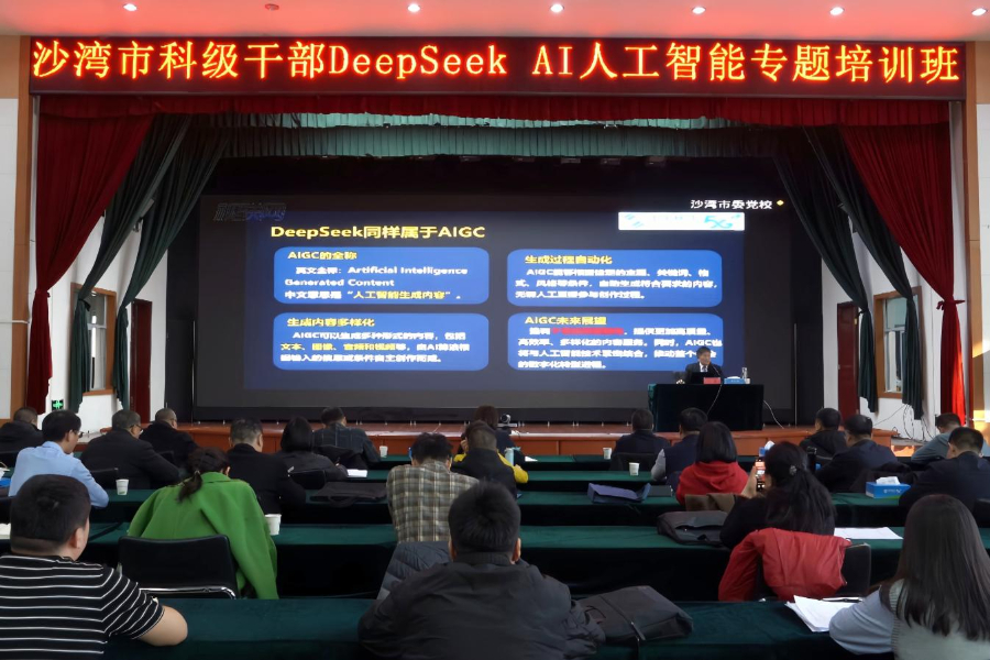 为积极顺应数字化时代发展需求,提升科级干部AI认知能力与DeepSeek应用技巧,3月11日,沙湾市举办科级干部DeepSeek AI人工智能专题培训班,邀请中国移动人工智能专家、全国首届数据要素大赛四川赛区评审专家、四川大学客座教授刘英专题授课,全市各乡镇(街道)、市直各部门(单位)200余名科级干部通过“线上+线下”相结合的形式,共同学习探索人工智能技术在工作中的创新应用。