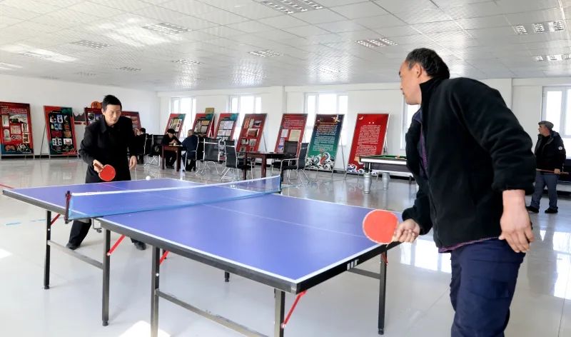 二道河子村党群服务中心功能室宽敞明亮,健身器材多样。