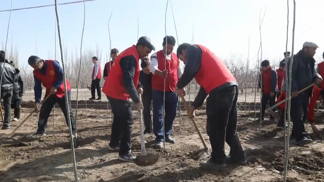 在麦盖提县吐曼塔勒乡库如克鲁克村植树现场,志愿者们分工明确,干劲十足,挥锹挖坑、扶树正苗、培实新土,各个环节井然有序,配合默契,每一个步骤都很认真。志愿者们虽然大汗淋漓,但大家的脸上却洋溢着幸福与满足,在这场与春天的 “绿色之约” 中,真切体悟到守护生态、播撒绿意的喜悦,也让环保的种子在彼此心间生根发芽,茁壮成长。