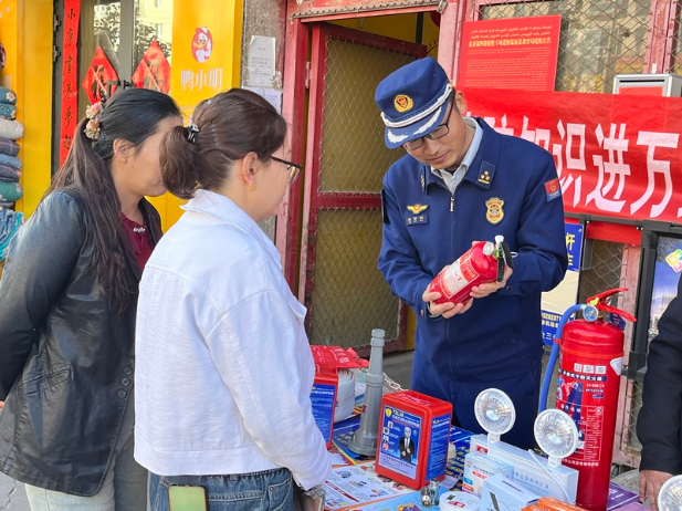 除了开展专项检查,温宿县消防救援大队、县市场监督管理局还在农贸市场支起摊位,开起“避坑小课堂”。