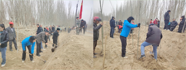 3 月 12 日,自治区人大常委会机关驻叶城县河园镇巴什托格拉勒(15)村工作队联合村“两委”,组织村干部、工作队员、党员群众等220 余人,积极开展春季植树活动,为乡村增添绿色。