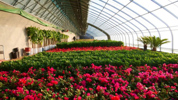 (大棚蔬菜花卉长势良好)