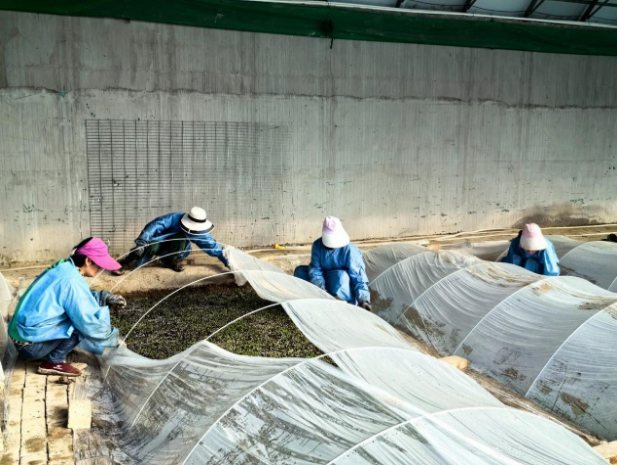 (工人们正在管理菜苗)