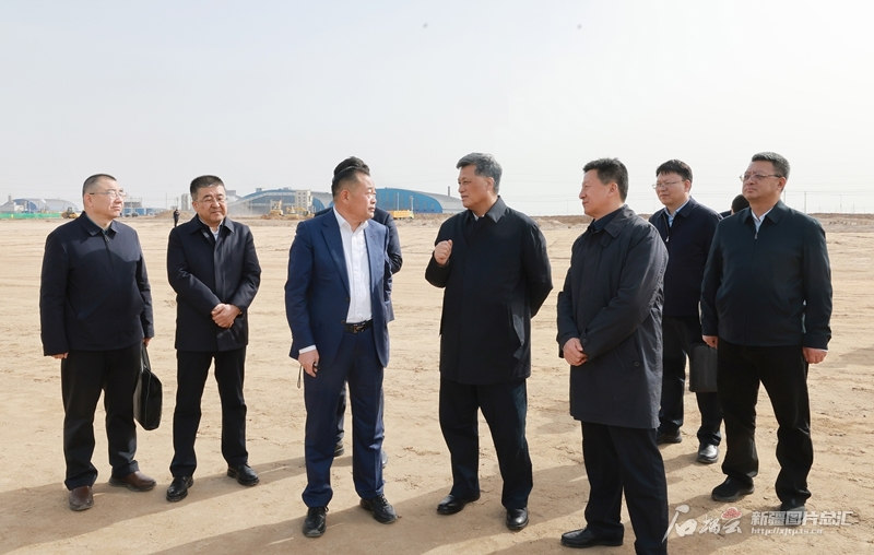 3月17日,自治区党委书记马兴瑞在哈密市调研。这是马兴瑞来到龙马控股集团高端装备制造基地,听取风电装备制造等项目规划介绍,察看工地建设实况。 石榴云/新疆日报记者崔志坚 摄