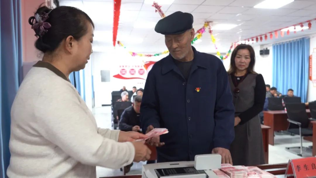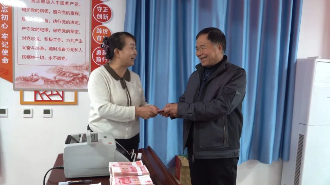 分红现场,村民们有序排队,签字、按手印、领取分红现金,拿到分红现金的村民个个脸上洋溢着收获的幸福,纷纷称赞党和国家的好政策,谈论着村集体经济发展带来的好处。