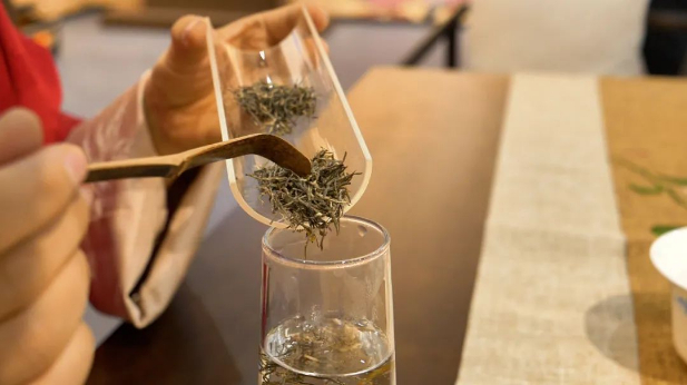 (展示绿茶冲泡手法)