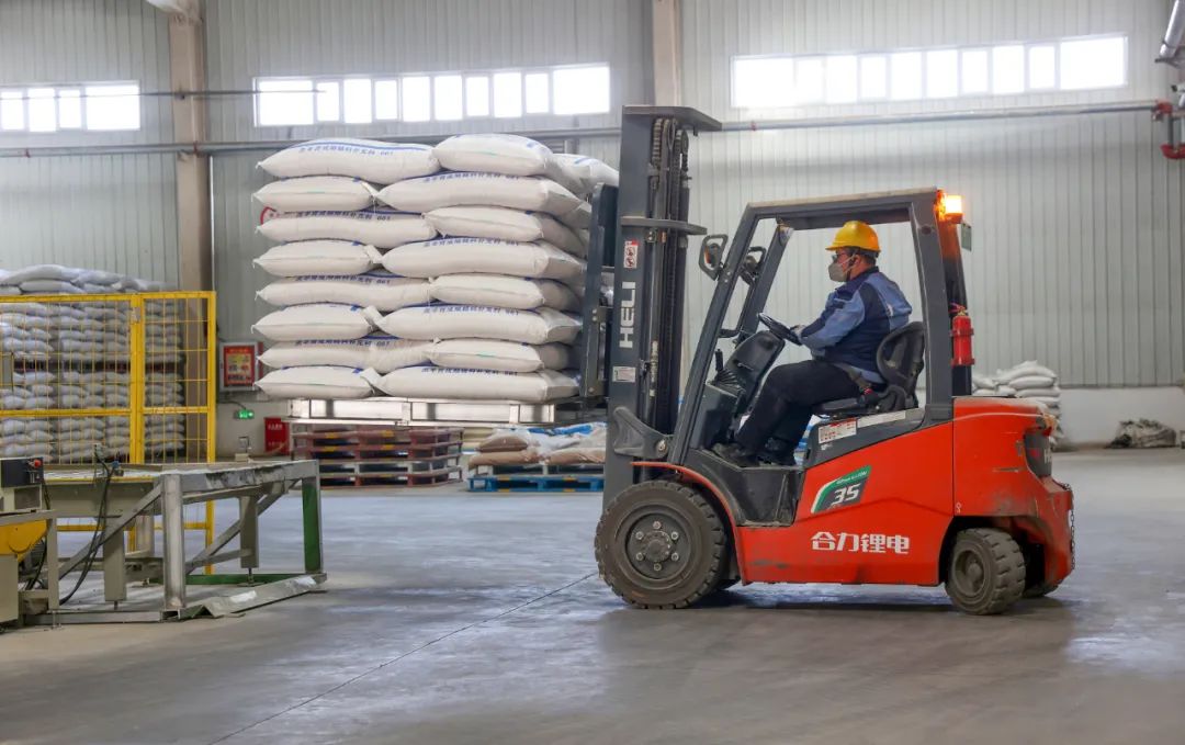 机械声隆隆作响,生产线快速运行。3月16日,走进位于铁门关经济技术开发区绿源产业园的新疆天牧生物科技有限公司生产车间,烘干机、包装机满负荷运转,工人正有条不紊地完成原料投放、饲料添加、打包装运等工序,经过挂袋、放料、缝包等一系列步骤后,一包包成品饲料被叉车运往仓库。