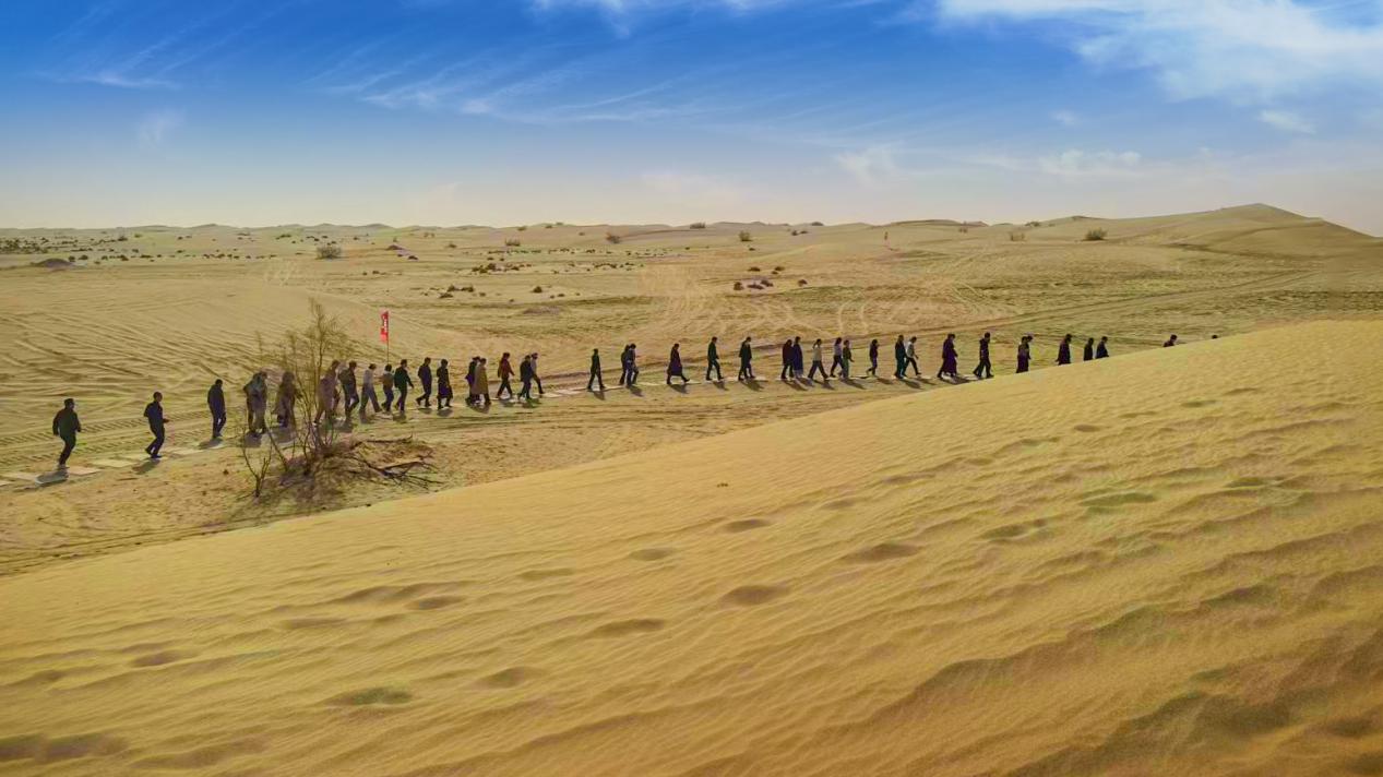 在“沙漠之门”三五九旅开发建设塔里木党性教育体验地,党校教师叶佳系统讲解了三五九旅开发建设塔里木的系列故事,讲述了1949年12月5日,中国人民解放军第一野战军一兵团二军五师十五团官兵从阿克苏出发,经过18天的艰苦跋涉,行程790多公里,穿越“死亡之海”,解放和田扎根沙漠、屯垦戍边,铸就“老兵精神”的事迹,并带领学员们沿着沙海老兵徒步横穿塔克拉玛干沙漠的红色足迹,在沙漠中徒步,重走老兵路。