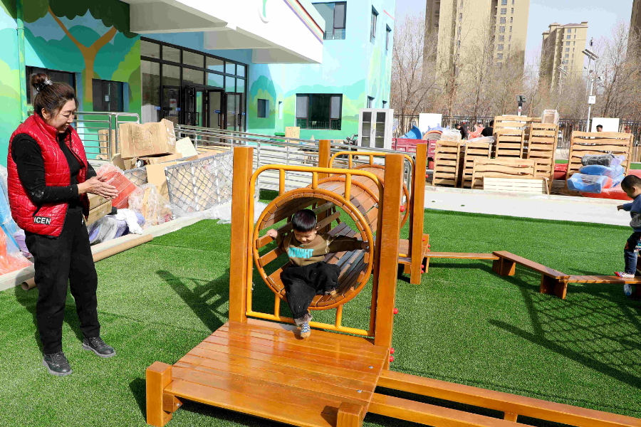 在第一师托育综合服务中心记者看到,部分儿童游乐设施已经安装到位,教学设施和生活设施已经摆放到位,教师们正忙着做手工布置教室。市民常淑芬看到小区旁边建设了新的托育综合服务中心,一有时间就带着孙子来这边看看,她和子女商量,准备把孙子放在这里进行照看。