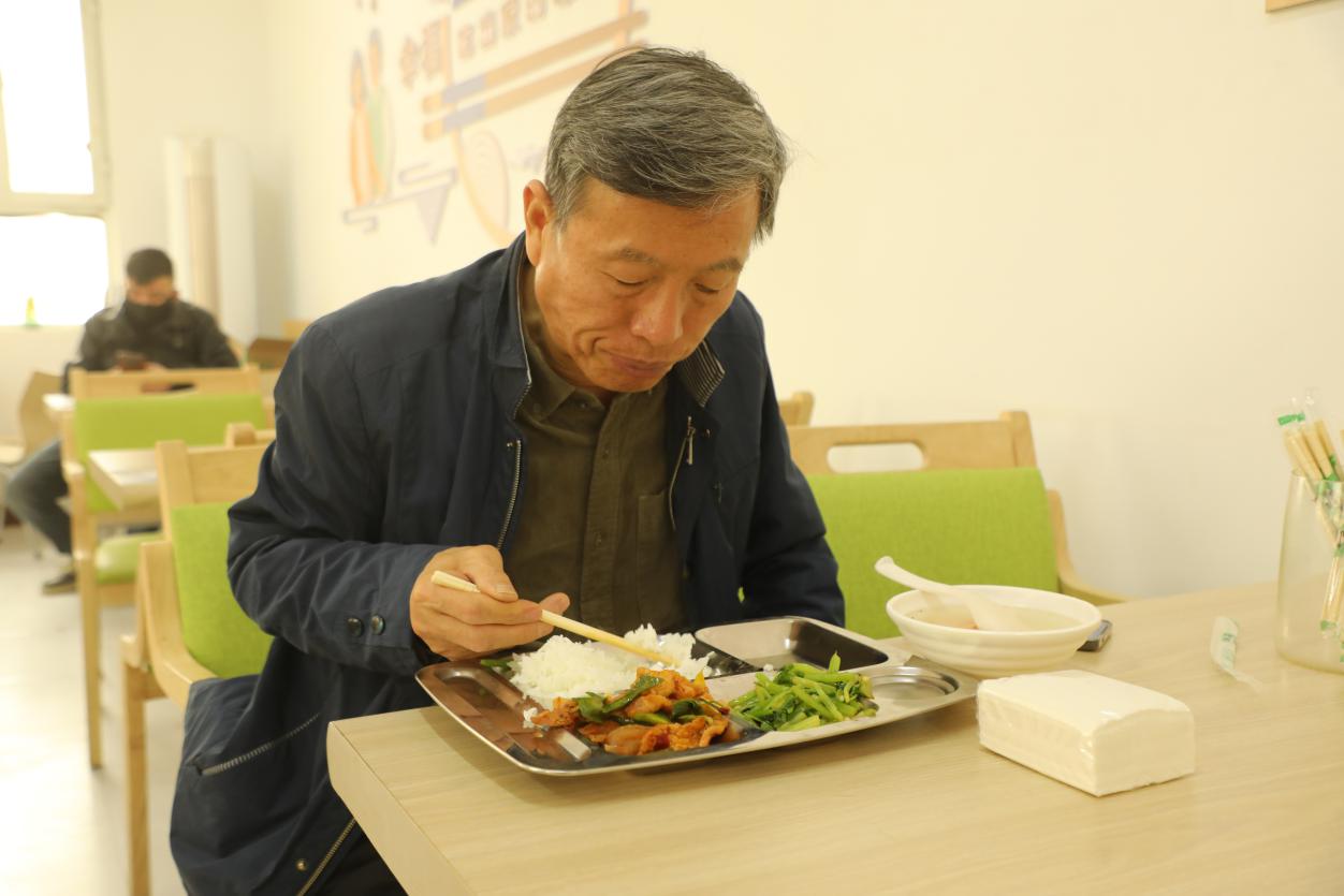 “我们老两口年纪大了,不方便做饭,每天都到这里吃口现成的。这里有主食、荤菜、素菜,还有汤,营养均衡,分量也足,价格公道,真是太方便了。”花园社区居民刘疆宇说。