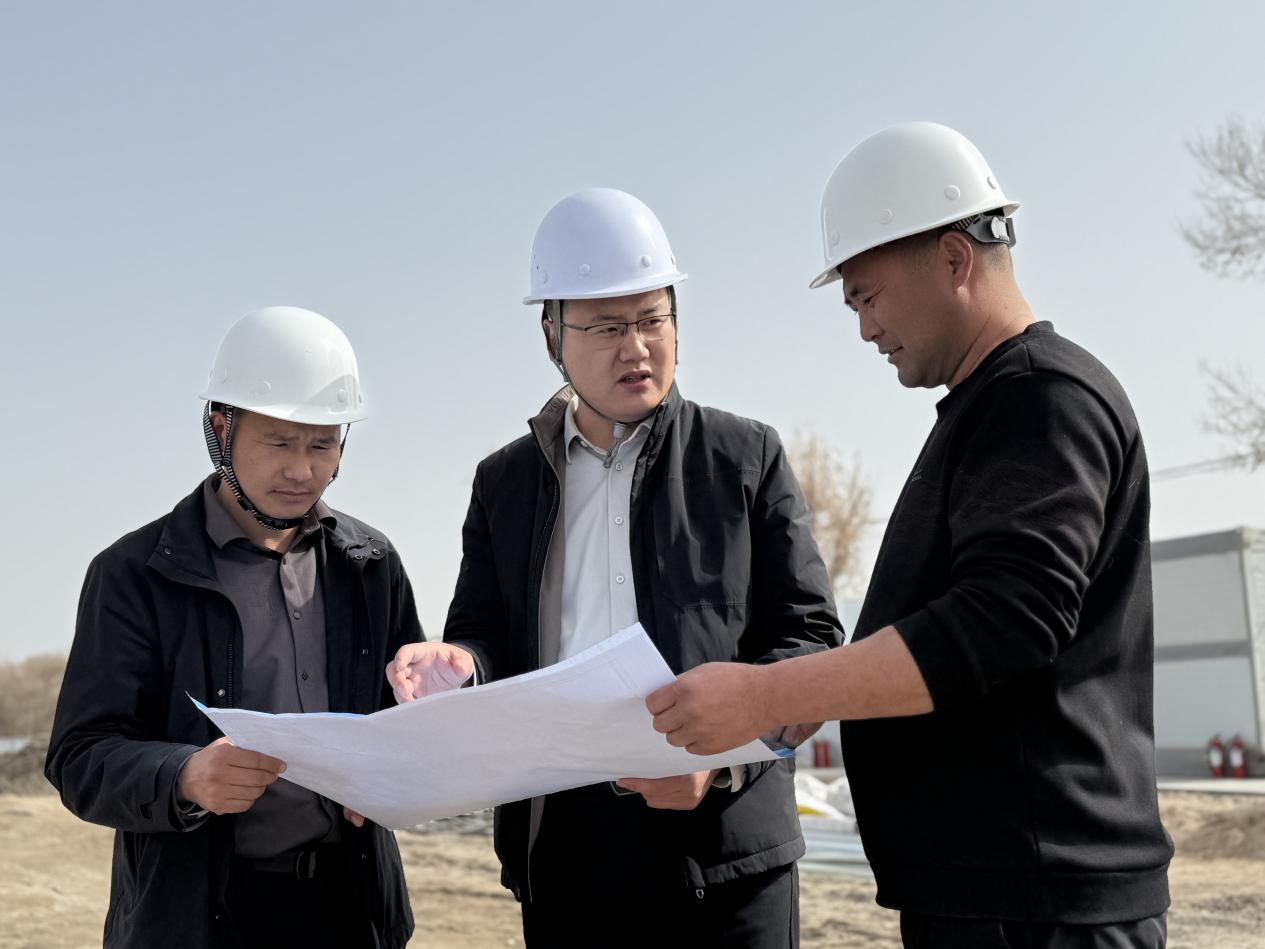 八团塔门镇相关部门工作人员向项目负责人(图右)了解项目建设推进情况。包伟 摄