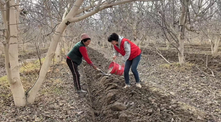 在核桃林里,大家迅速投入劳作,分工协作、配合默契。玉山老人驾驶着农用小机械,在前面缓缓行进,队员们则手持铁锨,将肥料精准地施入沟槽中;队员手提肥料桶,老人熟练地将肥料均匀地喂给土地;负责挂黄板的队员,踮起脚尖,努力将黄板挂在更高的树枝上,以便更好地发挥除虫作用。“三分肥七分管,咱们得让土地‘吃’上营养餐。”工作队第一书记梁磊一边劳作,一边与玉山老人亲切交流。在众人齐心协力下,原本让老人发愁的核桃林重焕生机。看着焕然一新的核桃林,玉山老人眼眶有些湿润。