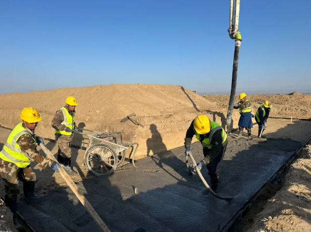 4月8日,在新疆宏远建设集团有限公司安装公司承建的三万头肉牛养殖示范区建设项目(二标段)(EPC)现场,施工机械发出震耳的轰鸣声,运输车辆往来穿梭,工人们围绕在混凝土泵车旁,全神贯注地进行散养圈垫层、青储窖垫层、草料棚垫层的浇筑作业。