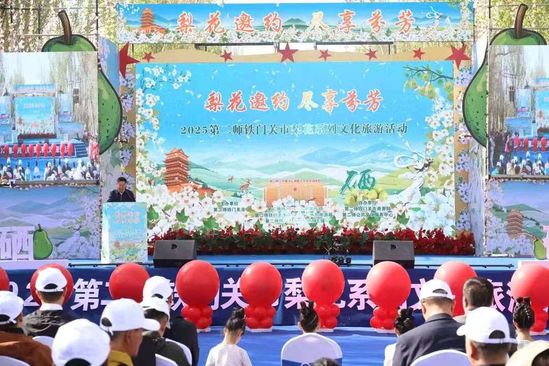 4月12日上午,二师铁门关市梨花系列文化旅游活动在三〇团园三连开幕。师市党委副书记、二师师长王磊出席活动并致辞。