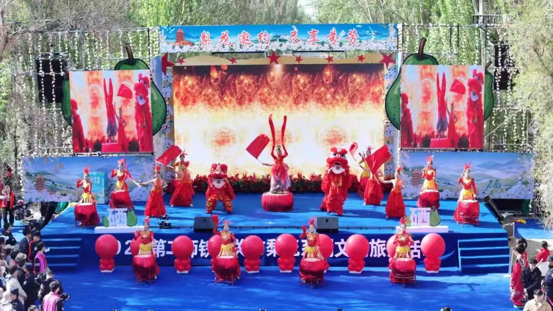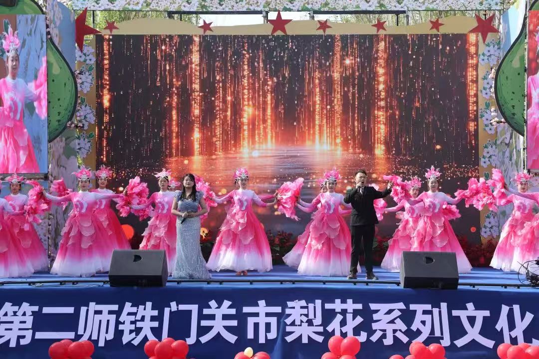 开幕现场举行了丰富多彩的文艺汇演,表演者用精湛的舞技和优美的歌声为观众带来《阳光路上》《我的梨花我的情》《军垦人的青春之歌》等精彩节目。歌手吐洪江·买买提倾力演唱了《麦西来甫跳起来》《梨花赋》《向春天出发》等歌曲,国家一级演员高茜为大家带来京剧《梨花颂》……一个个精彩绝伦的节目获得观众阵阵掌声。