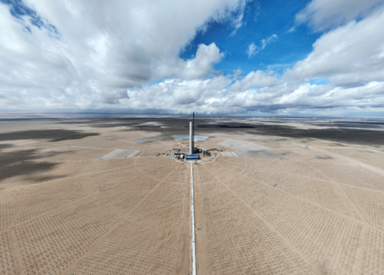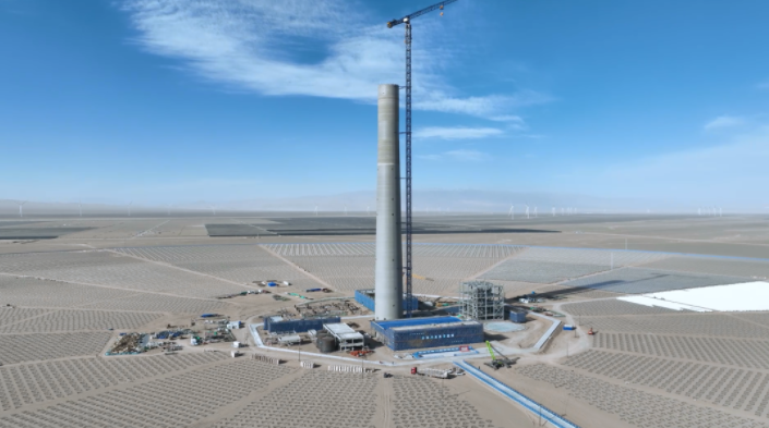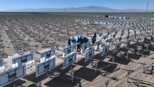 眼下,在海拔3200米的若羌县铁木里克乡,新疆海拔最高的塔式熔盐光热项目30万面定日镜进入安装阶段。